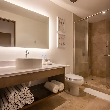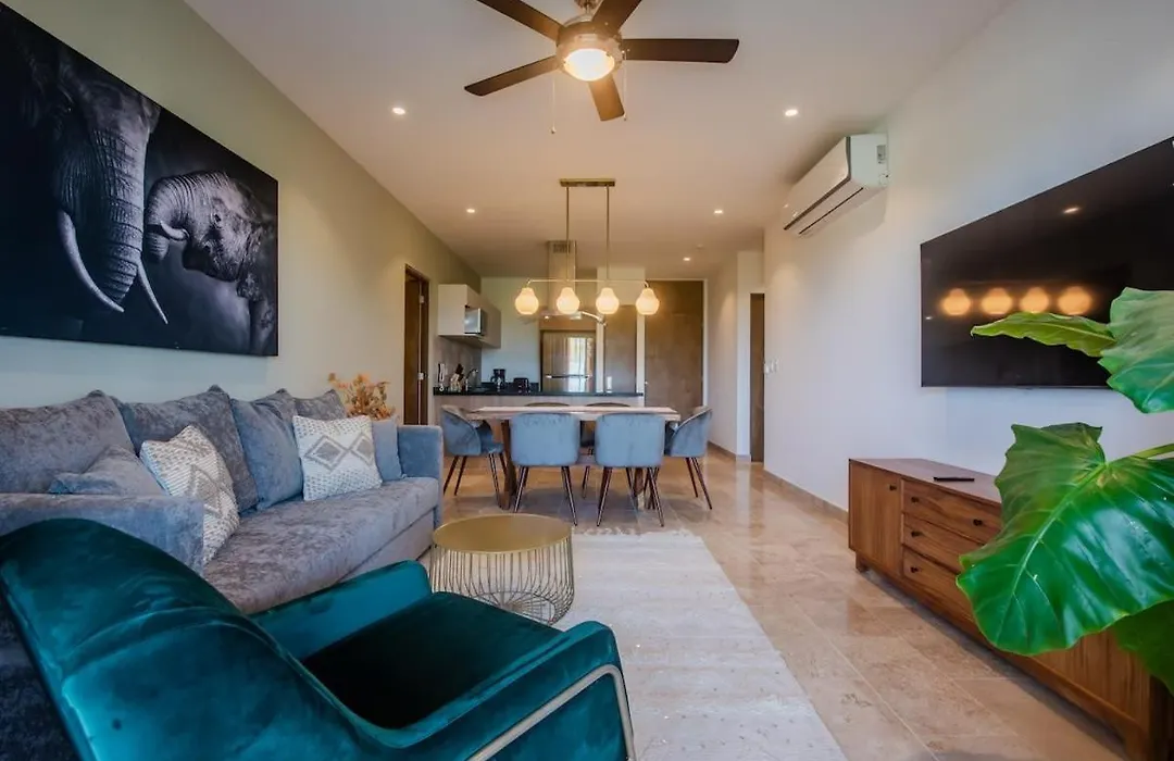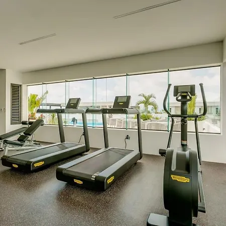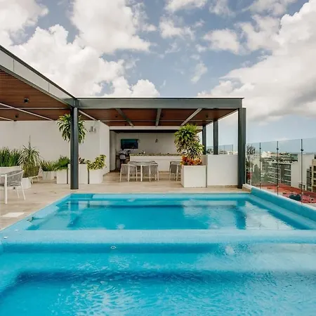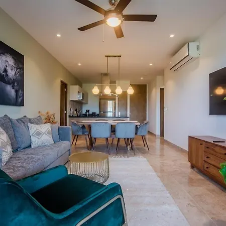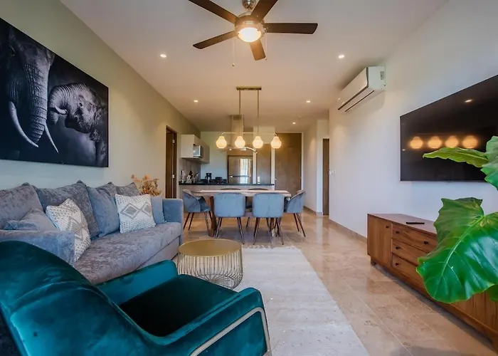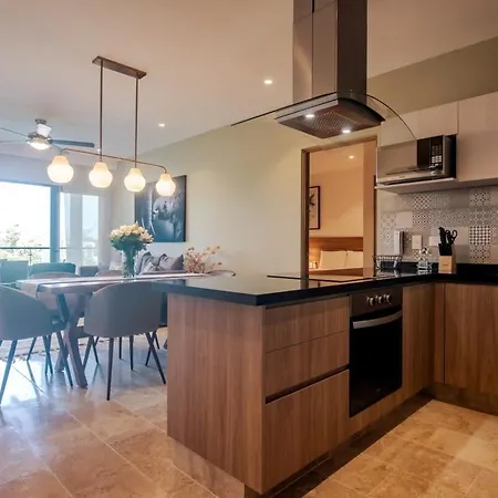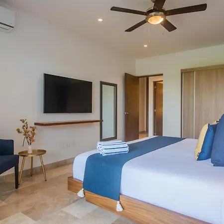 New Condo Roof Pool With Gym And Wifi Near 5Th Half Blk Kids Ok ligger inden for 13 minutters tur fra Playa Mamitas og 25-minutters gåtur væk fra Punta Esmeralda Strand. På værelserne er der en terrasse, kaffe- og tefaciliteter, højhastigheds internet, samt el elkedel, kaffemaskiner/tekedler og et køleskab i et fuldt udstyret køkken.